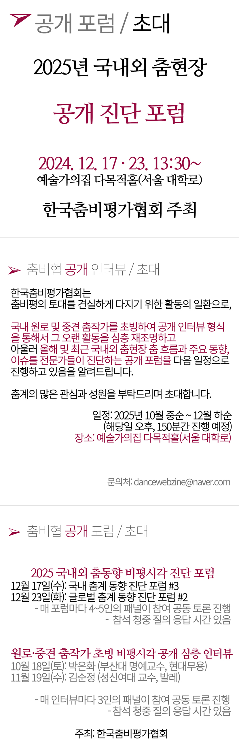 한국춤비평가협회 주최 - 2025 국내외 춤현장 공개 진단 포럼