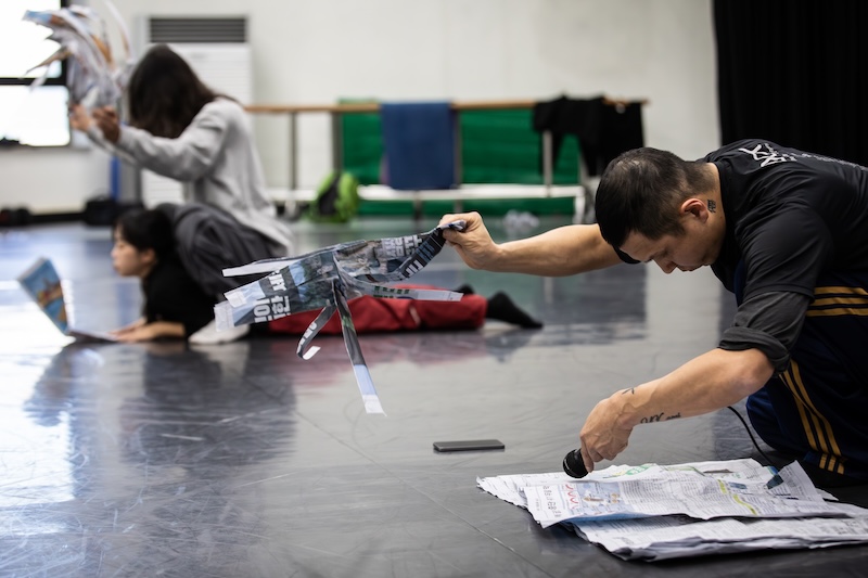 금배섭 안무가의 〈부유〉는 목적 없이 떠다니는 사물, 동물, 인간을 있는 그대로 바라보는 시선을 춤으로 표현한 작품이다. 안무가는 스스로도 부유하는 존재로서 무대 위 흐름과 움직임을 관찰하며, 그 감각을 무용수들의 몸으로 구현한다.