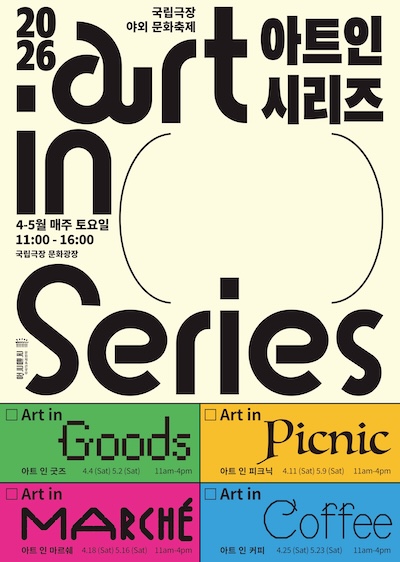 국립극장(극장장 직무대행 이경환)은 4~5월 매주 토요일, 해오름극장 앞 문화광장에서 야외 문화축제 ‘아트 인 시리즈’를 개최한다. 일상 속 예술 장터를 표방한 이 행사는 2021년 ‘아트 인 마르쉐’로 첫발을 내디뎠다.