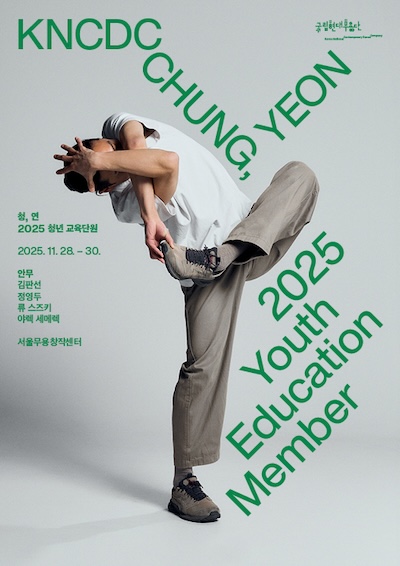 국립현대무용단(단장 겸 예술감독 김성용)은 11월 28~30일 서울무용창작센터에서 청년 교육단원 사업 공연인 〈청, 연〉을 선보인다. ‘청년의 때, 푸른 해’라는 의미를 담은 〈청, 연〉은 청춘의 열정과 가능성을 현대무용의 언어로 풀어내며, 국내외 안무가 네 명과 청년 교육단원들이 보여주는 과정의 결실이다.