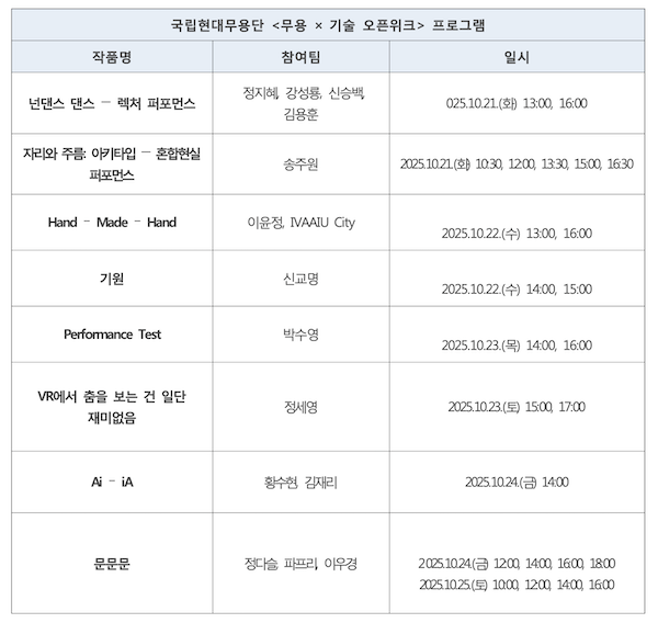 국립현대무용단 〈2025 무용×기술 오픈위크〉