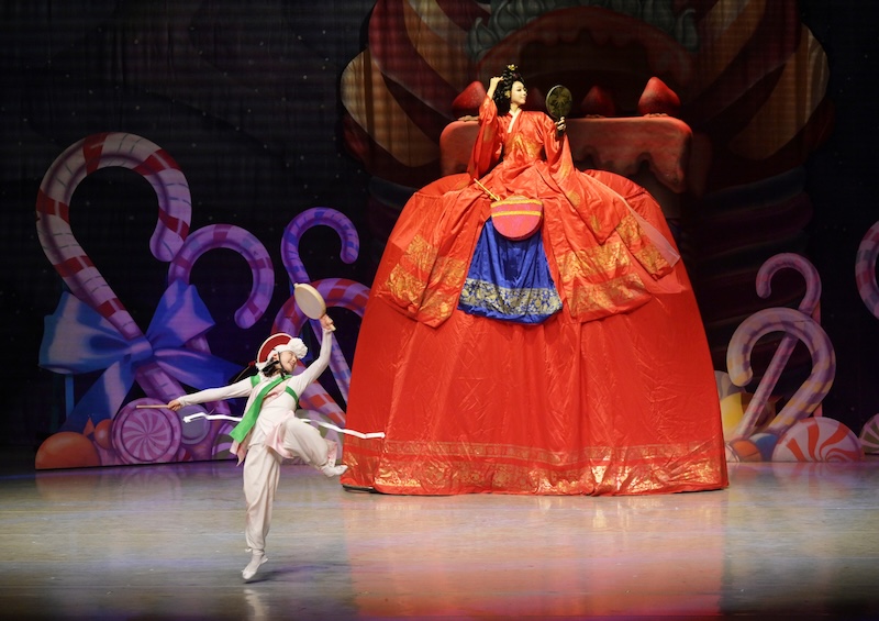 특히 2막에서 펼쳐지는 세계의 전통춤 장면에서는 ‘한복’을 입은 마더진저 인형과 ‘소고춤’, ‘상모돌리기’ 등의 한국 춤을 선보여, 클래식 발레와 조화롭게 어우러지는 한국적 정취를 전달한다. 또한 일반적으로 1막에서는 어린이, 2막에서는 성인이 된 클라라가 등장하지만 서울발레시어터의 무대에서는 어린 클라라가 그대로 2막을 이끌어가는 구성으로 이야기의 몰입도를 높인다.