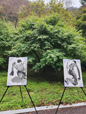 제가 학창시절부터 미술에 갈증이 있었다. 고3 시절에 무용학과와 미술학과를 가라는 선생님들 권유가 있었고, 결국 무용과를 갔지만 언젠가는 미술을 하리라 마음먹었었다. 하여 부케로 50세부터 미술활동을 시작했다. 춤추는 모습을 찍은 사진 전시는 처음부터 계속 같이 했고, 드로잉은 16년전 부터 함께 하게 되었다. 전체 전시는 축제 한 달 뒤에 단독으로 올린다. 3년전 부터는 〈춤이 있는 드로잉쇼〉를 메인으로 하게 되었다. 춤이 오브제가 되고 드로잉이 중심이 된다. 드로잉을 위해 춤을 추다가 1분씩 멈춰서 있기도 한다. 감사한 건 중부권 유명한 작가들이 모여 이 프로젝트가 성장했다. 16명의 드로잉 작가와 3명의 사진작가가 참여한다.