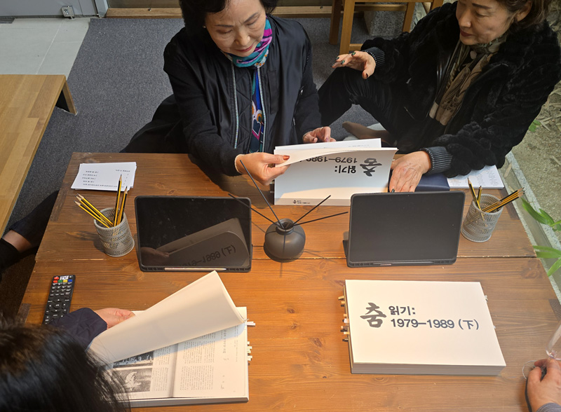 최근에는 방법론에 대한 고민이 깊어졌다. ‘논문 아니면 공연’으로 귀결되는 무용계에서 새로운 방식으로 표현해보고 싶다는 욕망이 쌓였고, 구술채록사업 경험과 전시에 대한 지속적인 관심이 더해졌다. 사실 이런 작업은 공공무용단이나 공공단체가 하면 더 좋을 텐데 관심이 더딘 것 같아 개인으로라도 시도해보고자 했다. 서울문화재단 ‘RE:SEARCH’ 지원금을 받은 것이 큰 동력이 되어 기초조사를 한 후 유채영 큐레이터를 섭외해 두 달간 함께 작업했다.