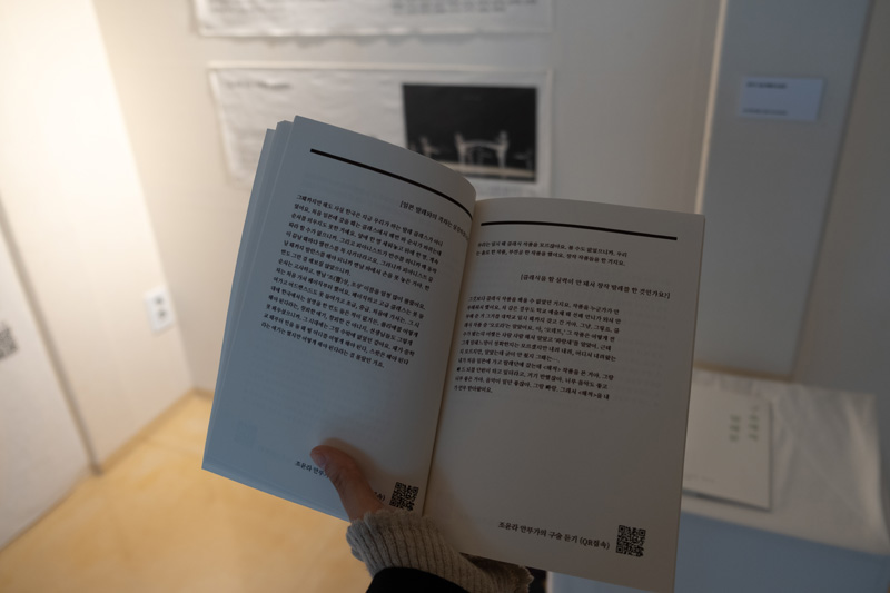 QR 음성 파일을 통해 구술 채록문과 안무가들의 음성을 들을 수 있었다. 단순히 자료를 보는 것에서 벗어나 듣고 보도록 한 이 같은 작업은 시간이 굉장히 많이 소요되었을 텐데….