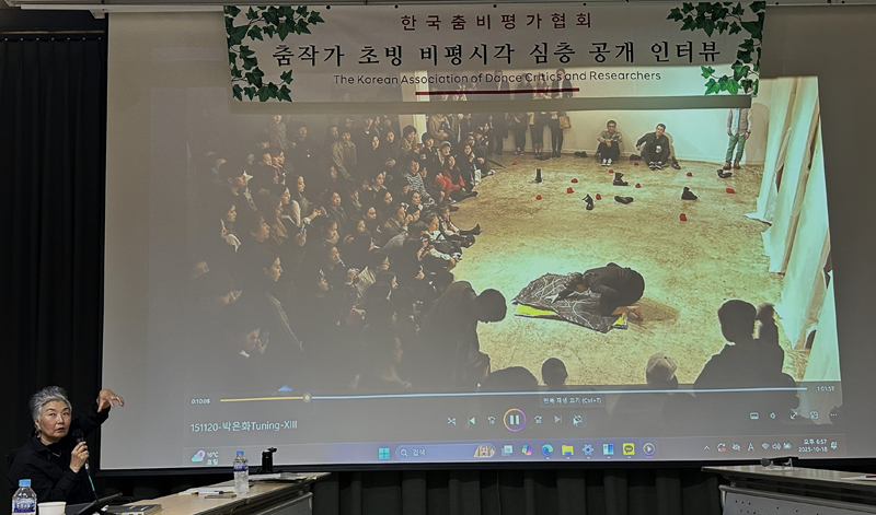 지난 10월 18일 오후에 있은 춤작가 박은화 초빙 비평시각 공개 심층 인터뷰, 예술가의집, 서울 대학로, 한국춤비평가협회 주최 ⓒ춤웹진 |