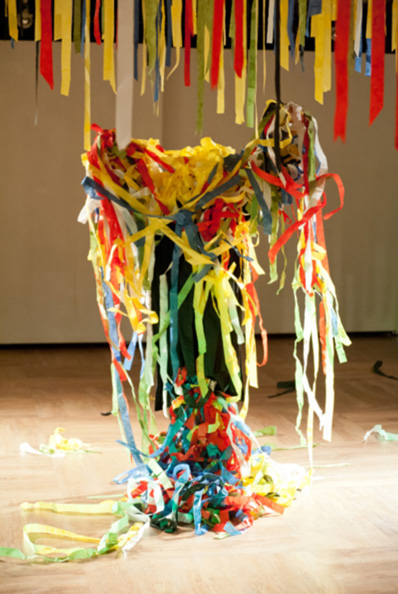 박은화: 오색 종이는 세포 같은 얘기였어요. 여러 색깔이 모여서 인간의 몸이 되는. 그 세포들이 기억하는 바람, 에너지, 소리 이런 것들을 형상화하는 구체적인 상징물을 가지고 왔거든요. 그런데 서낭당을 생각하는 사람이 많더라고요. 어린애들조차 그것을 무서워하는 경우도 있었어요.
