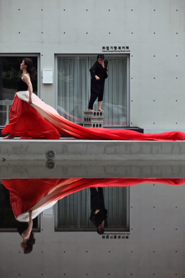 탁 트인 넓은 잔디밭 위의 남녀 군무는 무용수들의 몸 선이 확연하게 드러났다. 안무는 무용이 몸을 매개로 하는 예술 장르임을 용감하게 강조했다. 유리 통문과 초가집 사이에 만들어진 작은 수로 안, 물을 튀기며 이루어지는 군무는 마치 여신들의 코러스 같았다.