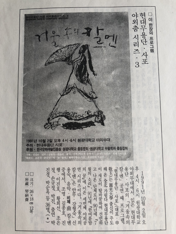 김화숙&현대무용단사포(1985-현재) 작품이 포함된다.