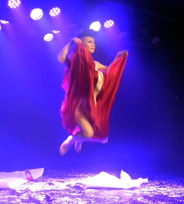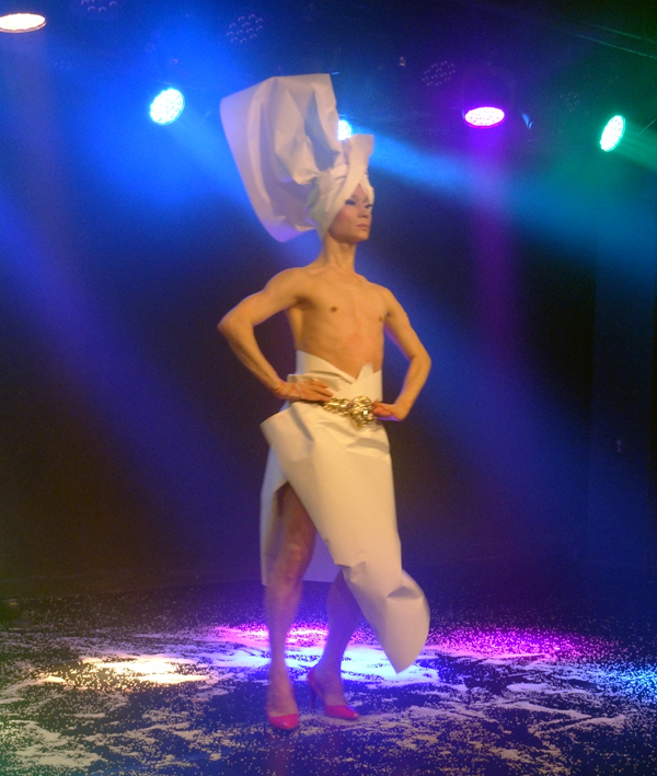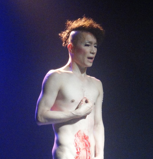 남자의 몸으로 태어났으나 자신이 여성임을 의심해본 적이 없다는 모지민은 트랜스젠더라 여겨지는 듯하다. 하지만 그는 성전환 수술을 택하지 않았고, 이번 무대에서는 그의 태어난 남자의 몸이 노출되곤 하였다. 어느 부분에서는 팬티를 착용한 상태에서 가위를 들고서는 남성 성기 모형을 자신의 성기 부분에 갖다 대며 관객에게 자르라고 청하는 코믹한 순간도 있었다. 수술을 했건 않았건 자신이 주체적으로 자각한 성 정체성을 사회적으로 용인받지 못한 사람의 비감이 감지되며, 여기서 더 나아가 복부에서 흘러내리는 피를 손으로 훔쳐내도록 연출된 장면은 비감을 넘어 극심한 아픔을 소환한다. 이 대목에서는 큰 바늘 같은 것을 들고서 자신의 생식기를 꿰매는 듯한 몸짓이 가미되며, 곧이어 일렁대는 사각형 반사경을 피묻은 손으로 받쳐 안아서 자기 몸을 가리고 앉자 반사경에는 관객들이 거울에 비친 것처럼 나타난다. 이 대목에서 모지민은 객석을 향해 묻는다. “나를 바라보는 당신은 어떤 모습일까요, 거울 속으로 보이는 당신은 어떤 사람인가요, 당신은 나의 어떤 모습을 보고 있나요?”