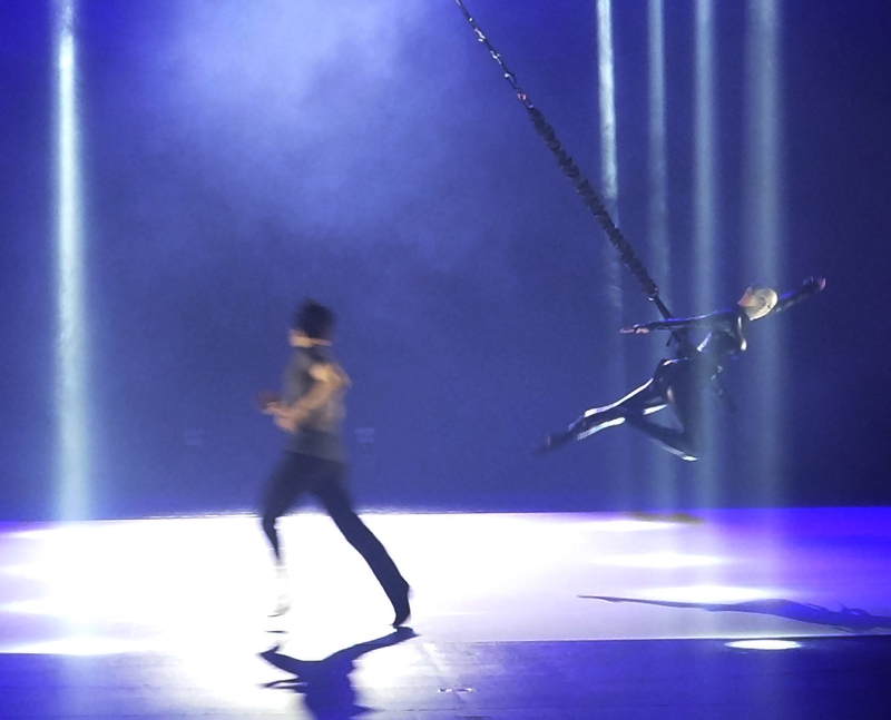 공연의 막이 올라가기 전부터 무대에는 뛰뛰를 입은 로봇이 서 있었다. 이 로봇이 팔을 놀리며 자신을 발리라 소개하면서 로봇의 춤이 진짜 춤일지 가짜 춤일지 객석의 판단을 묻는 내레이션이 흘러나온다. 막이 열리고 로봇은 걸어 퇴장하며 이어서 의사처럼 가운을 걸친 사람이 로봇 개발자인 듯하게 또 다른 로봇과 물건을 주고받는 관계를 진행한다. 그런 다음부터 무대에는 하얀 마스크를 쓴 복제 인간과 마스크를 쓰지 않은 실제 인간이 서로 맺어가는 관계가 벌어진다. 발리와 또 3대의 휴머노이드, 그리고 여러 조각들로 구성된 스크린에 비치는 영상과 더불어 복제 인간들이 관객들을 시뮬라크르의 세계로 빨아들인다. 처음에는 인간이 복제 인간을 조종하는 위치에 있는 모습이지만 곧 복제인간들만의 세계가 펼쳐진다. 휴머노이드의 카메라로 촬영된 무용수의 흩어진 실루엣 이미지가 뭉그러진 상태를 바꿔가며 비춰지기도 하며 사지동물처럼 걸으며 돌아다니는 휴머노이드에는 인간의 얼굴 가면이 부착되어 있다. 그냥 옅은 살구색의 스킨수트를 걸친 복제인간들이 사지를 뻗치며 노니는 것이 가상 세계의 일일 뿐이라면 환상적 장면들로 감지될 만하겠는데, 실제 닥쳐올 목전의 현실이 그럴 것이라 깨우친다면 느낌은 확 달라질 만하다.