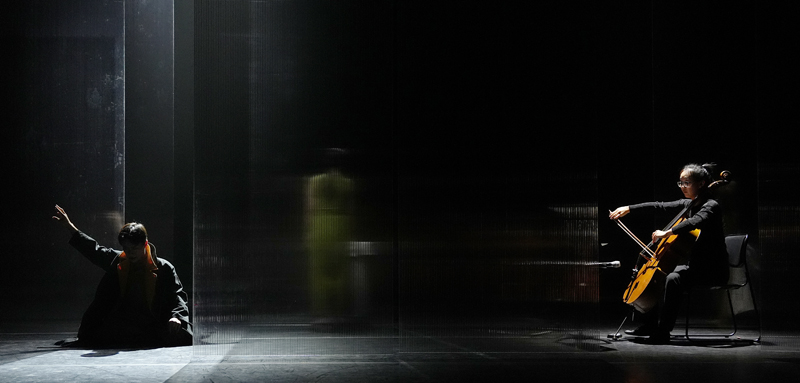 1장. 김현태가 무대중앙에 정좌한 채 바닥을 내려다보고 있다. 첼로 연주. 팔을 들어 손바닥으로 바닥을 쓸 듯 닦는다. 지워버리고 싶다는 몸짓으로 보이기도. 팔을 들어 허공에다 글을 쓴 뒤, 객석을 가리키며 반바퀴 휘젓는다. 춤의 배경인 아크릴판 설치물에 일렁이는 조명. 물의 일렁임 같다. 허리를 자르듯 뒷 배경 한가운데만 배치된 아크릴판에 조명이 되비치는 그림과 물의 일렁임이 압권이다. 어두운 배경에 휙 지나며 흐르는 빛은 밤하는의 유성처럼 보이기도. 먹빛의 강. 흐르는 역사의 은유처럼 보이는 김현태의 솔로춤의 배경, 아름다웠다. 나라가 처한 암울한 상황을 보여주는 설치물이 춤을 떠받든다. 안무의도가 선명하게 잘 드러난 춤이미지였다.