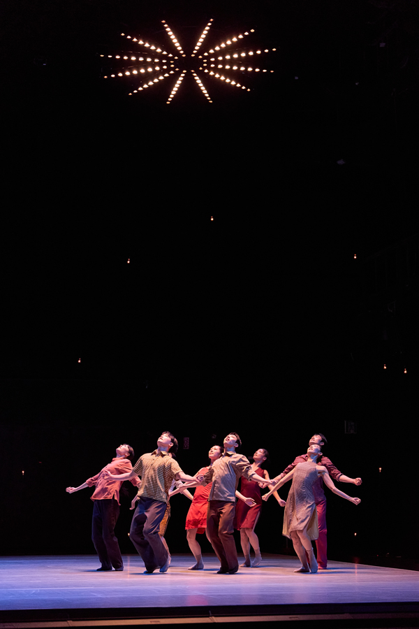 무엇보다 작품의 움직임은 동시대 발레가 걸어온, 이른바 ‘탈고전적 기교’라는 이율배반적 가치를 여실히 담아낸다. 토슈즈 대신 양말을 신고 행해지는, 발차고, 가슴을 손에 받쳐 치켜세우고, 스텝을 밟고, 발을 구르고, 천진난만하게 달리고, 어깨를 들썩거리고, 서로를 당겨 세우고, 돌리고, 포개고, 교차하고, 휘감고, 몸통을 구불대고, 엉덩이를 씰룩거리고, 시선을 건네고, 미소 짓고, 각자의, 둘의, 셋의, 넷의 미묘한 차이들이 점차 하나가 되어 합치된 움직임으로, 고양된 기쁨을 오직 몸과 춤으로 드러내는 극치의 기교를 완성해 낸다. 곧게 뻗기보다 각지고 비틀린 신체 선, 높게 들려진 가벼움보다 한껏 내려앉은 저중심의 무게, 숨이 차오를 대로 차오르게 한순간도 멈춤 없는 지속되는 흐름은 발레 전통에 철저하게 반대하면서도 철저하게 밟고 올라선 것이었다. 클래식을 섭렵하고 넘나드는 재즈연주자의 즉흥과 기교에 대응하는 명석한 안무전략을 면면히 펼쳐 보였다.