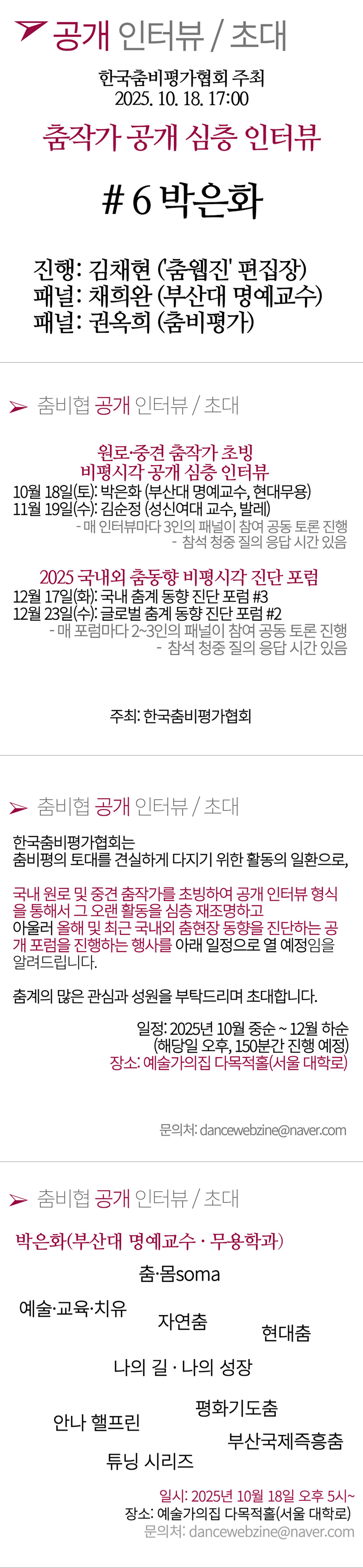한국춤비평가협회 주최 - 춤작가 공개 심층 인터뷰 #6 박은화