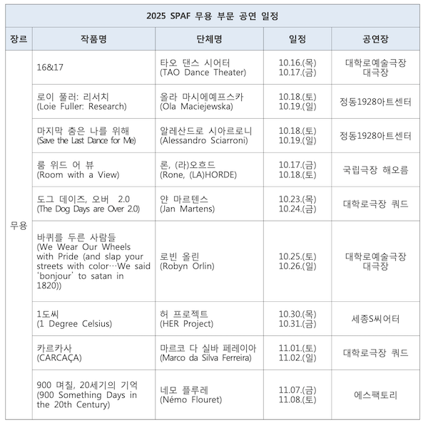 25회를 맞은 한국 대표 국제공연예술축제 ‘2025 서울국제공연예술제(Seoul Performing Arts Festival, 이하 SPAF)’가 ‘2025 대한민국은 공연중’ 캠페인과 함께 10월 16일~11월 9일 국립극장, 세종문화회관, 아르코·대학로예술극장 등 서울 주요 공연장에서 열린다. 예술경영지원센터(대표 김장호)가 주최·주관하고 문화체육관광부와 한국문화예술위원회가 후원하는 이번 축제는, 지난 25년의 성과 위에 세계 공연예술의 흐름을 담아내며 확장된 시선과 실험적인 무대를 선보인다.