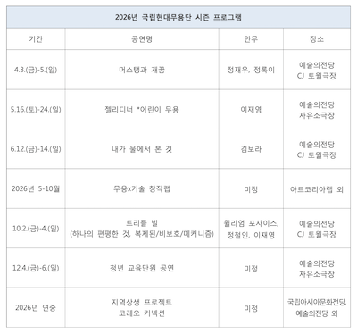 국립현대무용단 2026 시즌 라인업