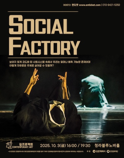 길프로젝트가 10월 3일 청라블루노바홀에서 신작 〈Social Factory〉를 선보인다. 〈Social Factory〉는 현대 자본과 기계 문명 속에서 인간이 겪는 사회적 억압과 인간성 상실, 그리고 그로 인한 신체 분열을 무대 위에 그려낸다. 작품은 스스로의 자각에서 비롯된 분열의 가능성을 출발점으로 삼아, 진정한 얼굴을 찾아가는 과정 속에서 자유의 연대와 개인의 고독이 공존하는 모습을 탐구한다.
