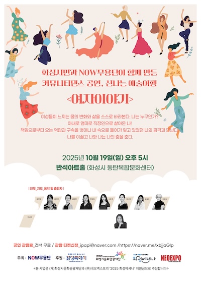 NOW무용단(예술감독 손인영)이 화성문화재단 메세나 지원사업으로 진행되는 〈여자 이야기〉가 10월 19일 동탄 반석아트홀에서 열린다.