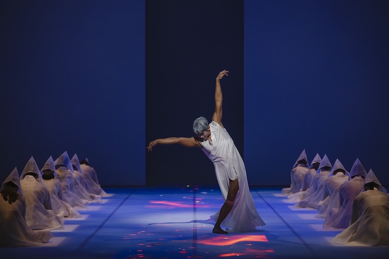 작품은 총 3장으로 구성돼 죽음 후 망자가 겪는 49일의 여정을 단계적으로 보여준다. 1장 ‘의식의 바다’는 죽음을 애도하는 제의로 시작, 저승사자가 등장해 망자를 사후세계로 인도한다. 죽음의 강을 건너며 춤추는 망자의 독무와 죽음을 애도하는 살아있는 자들의 군무로 강렬한 대비를 보여준다. 2장은 ‘상념의 바다’로, 망자의 지난 삶이 파노라마처럼 펼쳐진다. 소년기부터 장년기까지 순차적으로 전개되는 가운데, 삶에서 겪는 기쁨과 슬픔, 회한과 체념 등 감정의 굴곡을 섬세하게 담아냈다. 마지막 3장 ‘고요의 바다’에서는 시작과 끝을 알 수 없는 반복 움직임을 통해 삶과 죽음, 그리고 사후세계가 연결된다는 성찰과 위로를 전한다.