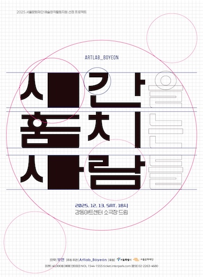 아트랩보연(대표 김보연)이 12월 13일 강동아트센터 소극장 드림에서 시간의 흐름 속에서 잊힌 감각과 삶의 리듬을 되묻는 〈시간을 훔치는 사람들〉을 공연한다. 작품 〈시간을 훔치는 사람들〉은 2025년 서울문화재단 예술창작활동지원 선정 프로젝트로, ‘시간’을 대하는 삶의 태도를 반추해보며 관객이 자신만의 삶의 리듬과 속도를 되돌아보게 하는 경험을 제안한다.