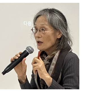 청중 1: 안녕하세요. 대구에서 온 편세연이라고 합니다. 저는 선생님을 알게 된 지 오래되지는 않았어요. 오늘 이야기를 들으며 선생님이 얼마나 아름다운 분인가를 알게 되었고요. 선생님이 작품에서 던지는 화두가 저에게 도움이 되는 계기가 되었습니다. 감사합니다.