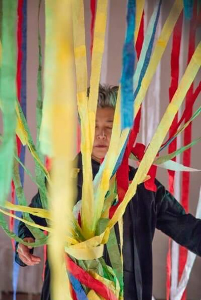 박은화: 오색 종이는 세포 같은 얘기였어요. 여러 색깔이 모여서 인간의 몸이 되는. 그 세포들이 기억하는 바람, 에너지, 소리 이런 것들을 형상화하는 구체적인 상징물을 가지고 왔거든요. 그런데 서낭당을 생각하는 사람이 많더라고요. 어린애들조차 그것을 무서워하는 경우도 있었어요.
