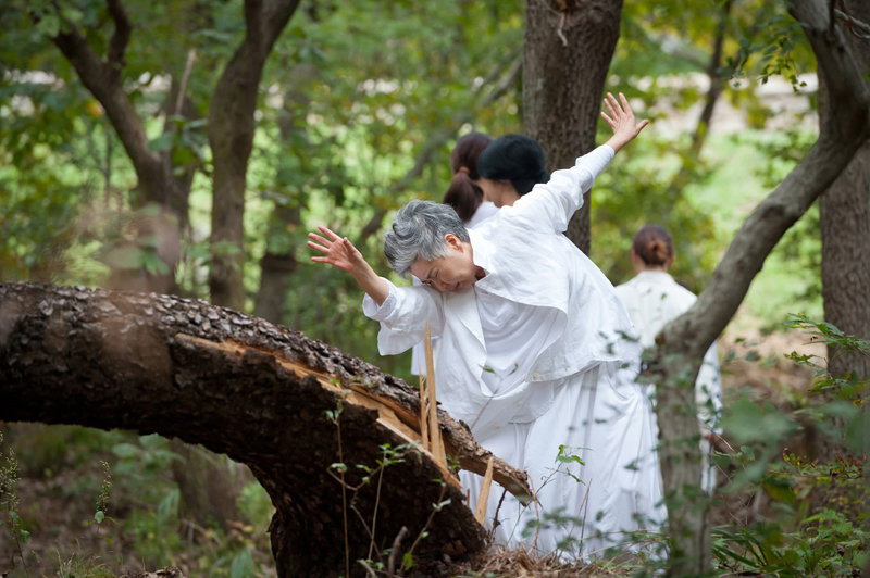 권옥희: 작가 본인의 의견을 듣고 싶었어요. 저는 어떻게 이해했냐면 이성의 폭력으로부터 해방되는 것, 언어로 설득하는 게 아니고 몸으로 하는 놀이로서 보여주려고 한 것이 아닌가. 전혀 다른 경험의 춤이 발전해서 춤으로 설득을 하는 것이 아니고 놀이의 차원으로 넘어간 것이 아니었나 싶습니다. 혹은 무녀들의 공수이거나. 선생님의 작품은 상당히 철학적이에요. 비합리성을 가지고 춤을 추는데 이게 원천적으로 동양에서 연유한 사고이고, 철학의 배경이고, 그런 것이 아나겠는가.