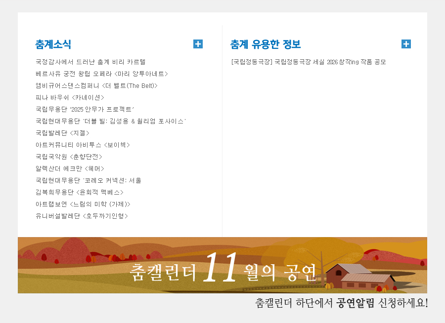 춤웹진 발행일에 소식메일을 받아보실 수 있습니다.