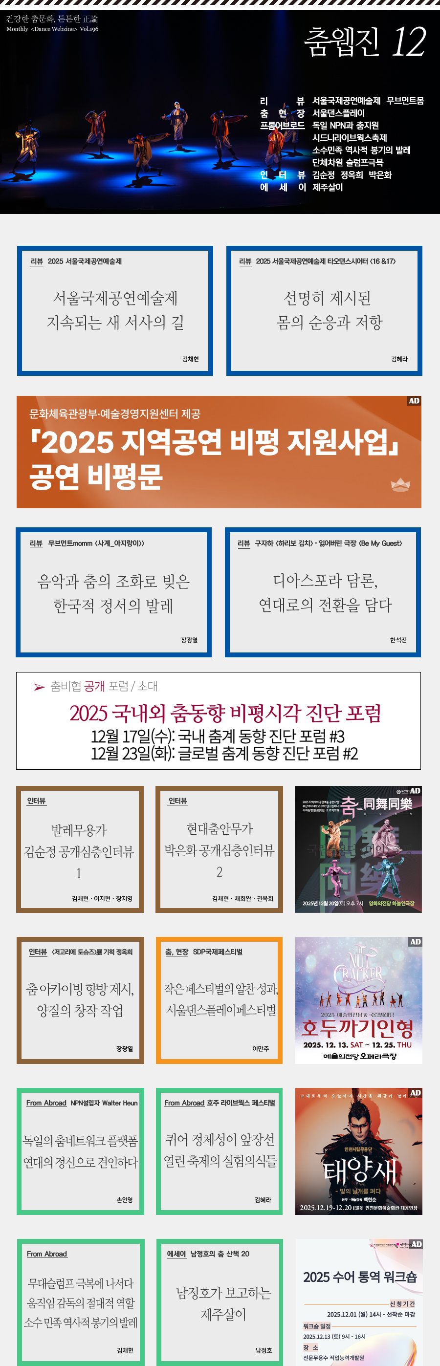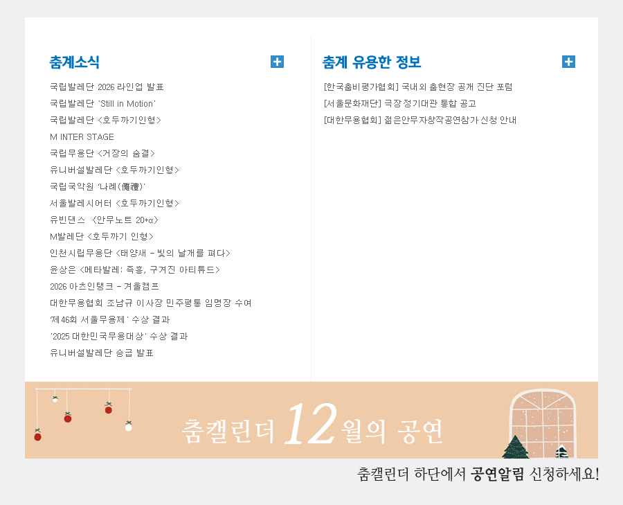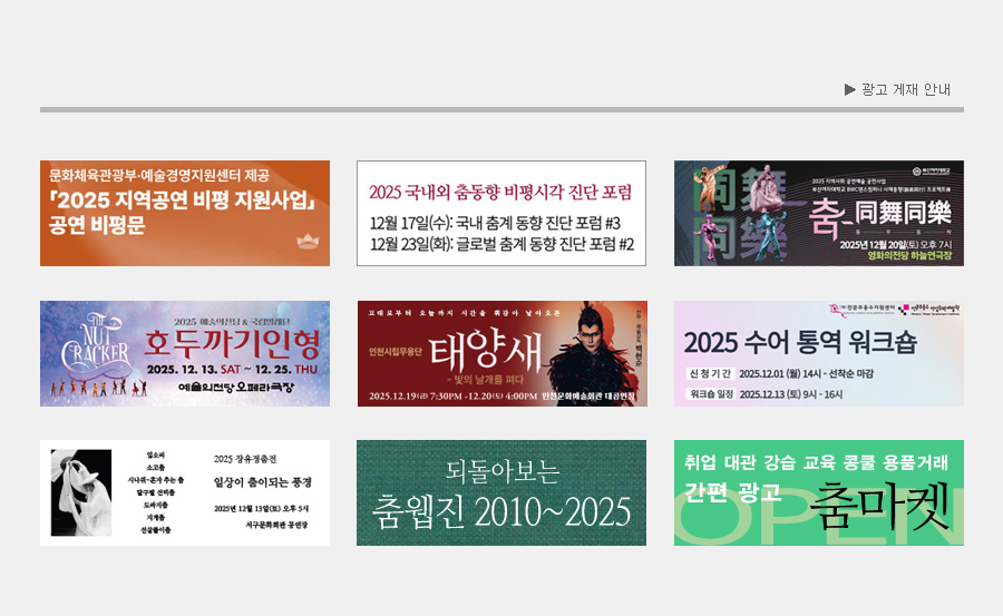 춤웹진 발행일에 소식메일을 받아보실 수 있습니다.