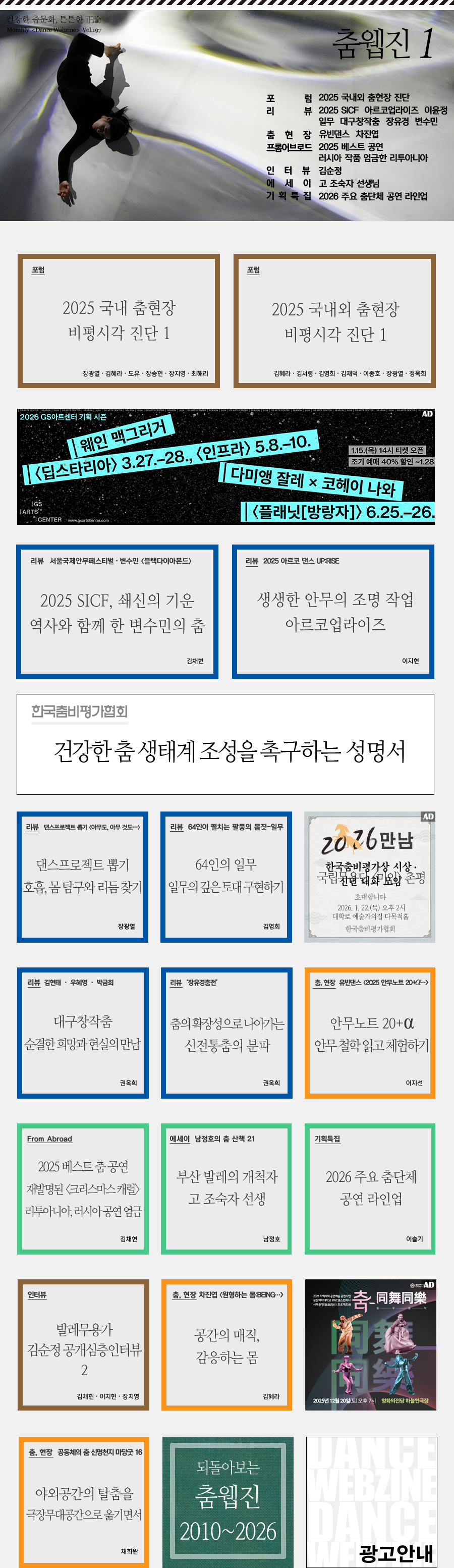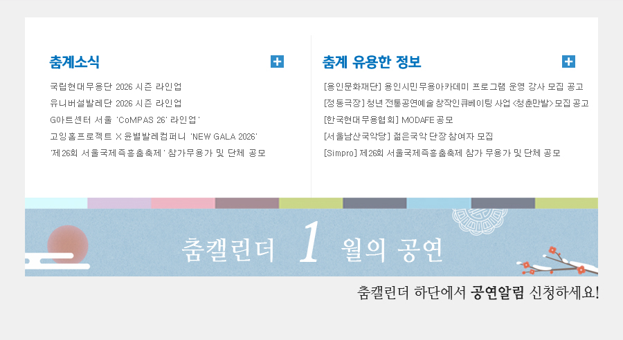 춤웹진 발행일에 소식메일을 받아보실 수 있습니다.