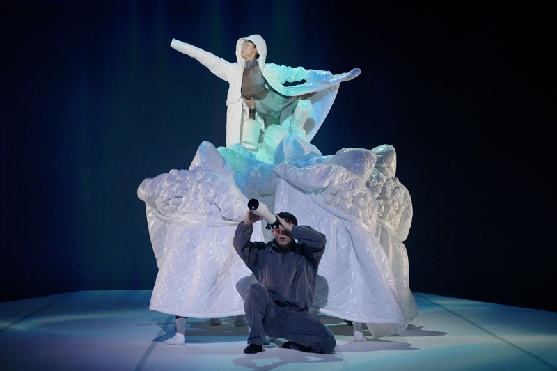 이후 사람들이 벗어놓은 하얀 패딩들을 겹겹이 뒤집어쓴 캐릭터가 오케스트라 피트 앞 무대 아래 공간을 느릿느릿 왕래하며 배회할 동안 무대에서는 갈색조의 스킨슈트를 착용한 출연자 예닐곱 명이 빙판 조각들이 떠다니는 이미지 위에서 엉키며 버둥대는 모습들을 이어간다. 버둥대는 무리들이 퇴장하고 그 캐릭터가 홀로 무대에 올라 이동하자 패딩들이 미끄러져 내리고 누군가가 패딩들을 다시 덮어주기를 반복하지만 끝내 패딩이 벗겨진다. 아마도 허우적대는 무리들은 극지방의 동물들을, 자꾸 벗겨지는 패딩은 대책 없이 녹아내리는 빙하를 암시하는 듯하다.