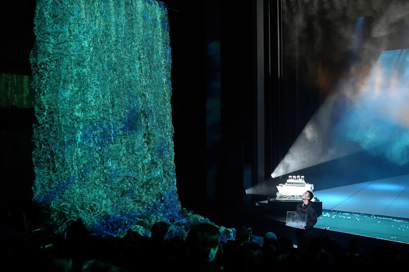 얼음을 흩뜨린 출연자가 얼음을 다시 주워담는 사이 객석의 집단은 무대로 돌아가서 같은 동작들로 무리를 짓는다. 얼음 큐브를 주워담은 투명 박스를 마임이스트가 객석으로 갖고 내려와서 멍하니 살펴보고 객석을 응시할 동안 무대 위의 집단은 사라진다. 어두워진 무대에서 하얀 패딩을 걸친 어느 출연자가 빗살 구조물 앞을 뚜벅뚜벅 통과하고 나자 빙산이 무너지는 굉음이 계속 들리고 크루즈 유람선, 빗살 구조물, 대형 고드름, 낙하하는 물방울로 생성되는 둥근 파동 이미지만 남은 상태다. 얼음 박스를 들고 무대로 되돌아간 마임이스트가 박스를 치켜들고 크루즈 유람선을 향해 얼음 큐브들을 쏟아붓는 것과 동시에 빗살 구조물에서 엄청 강렬한 빛이 뿜어져 나오고 대형 고드름은 바닥까지 하강하며 바닥에는 빙하-빙판의 파열을 나타내는 찢어진 이미지가 투사되는 대파국이 빚어진 상황에서 무대는 여전히 기후위기를 남긴 채 마감한다.