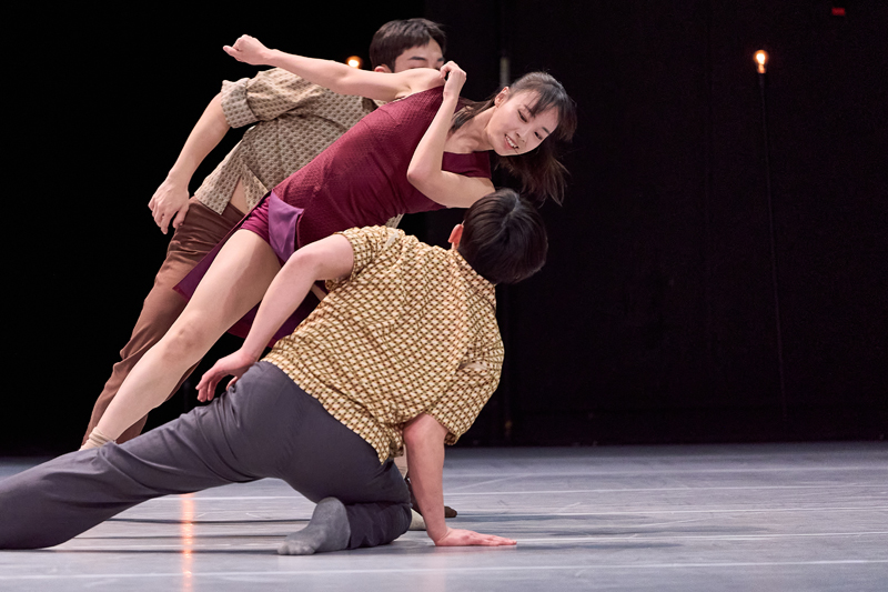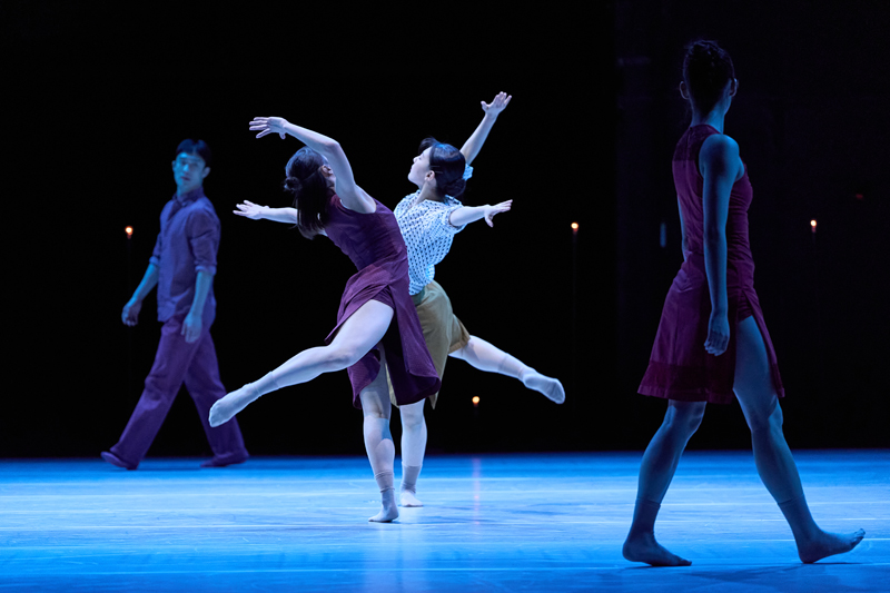 무엇보다 작품의 움직임은 동시대 발레가 걸어온, 이른바 ‘탈고전적 기교’라는 이율배반적 가치를 여실히 담아낸다. 토슈즈 대신 양말을 신고 행해지는, 발차고, 가슴을 손에 받쳐 치켜세우고, 스텝을 밟고, 발을 구르고, 천진난만하게 달리고, 어깨를 들썩거리고, 서로를 당겨 세우고, 돌리고, 포개고, 교차하고, 휘감고, 몸통을 구불대고, 엉덩이를 씰룩거리고, 시선을 건네고, 미소 짓고, 각자의, 둘의, 셋의, 넷의 미묘한 차이들이 점차 하나가 되어 합치된 움직임으로, 고양된 기쁨을 오직 몸과 춤으로 드러내는 극치의 기교를 완성해 낸다. 곧게 뻗기보다 각지고 비틀린 신체 선, 높게 들려진 가벼움보다 한껏 내려앉은 저중심의 무게, 숨이 차오를 대로 차오르게 한순간도 멈춤 없는 지속되는 흐름은 발레 전통에 철저하게 반대하면서도 철저하게 밟고 올라선 것이었다. 클래식을 섭렵하고 넘나드는 재즈연주자의 즉흥과 기교에 대응하는 명석한 안무전략을 면면히 펼쳐 보였다.